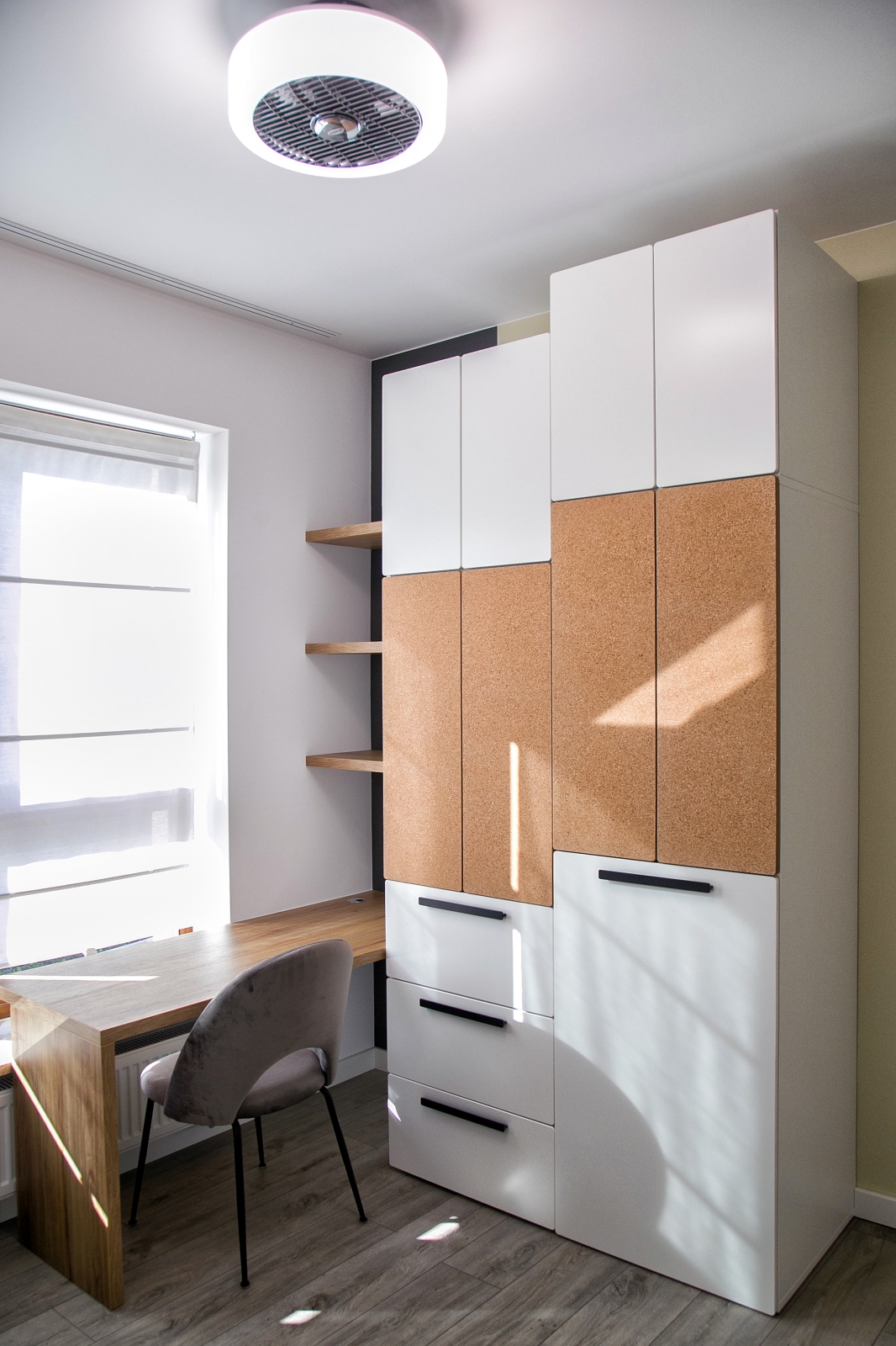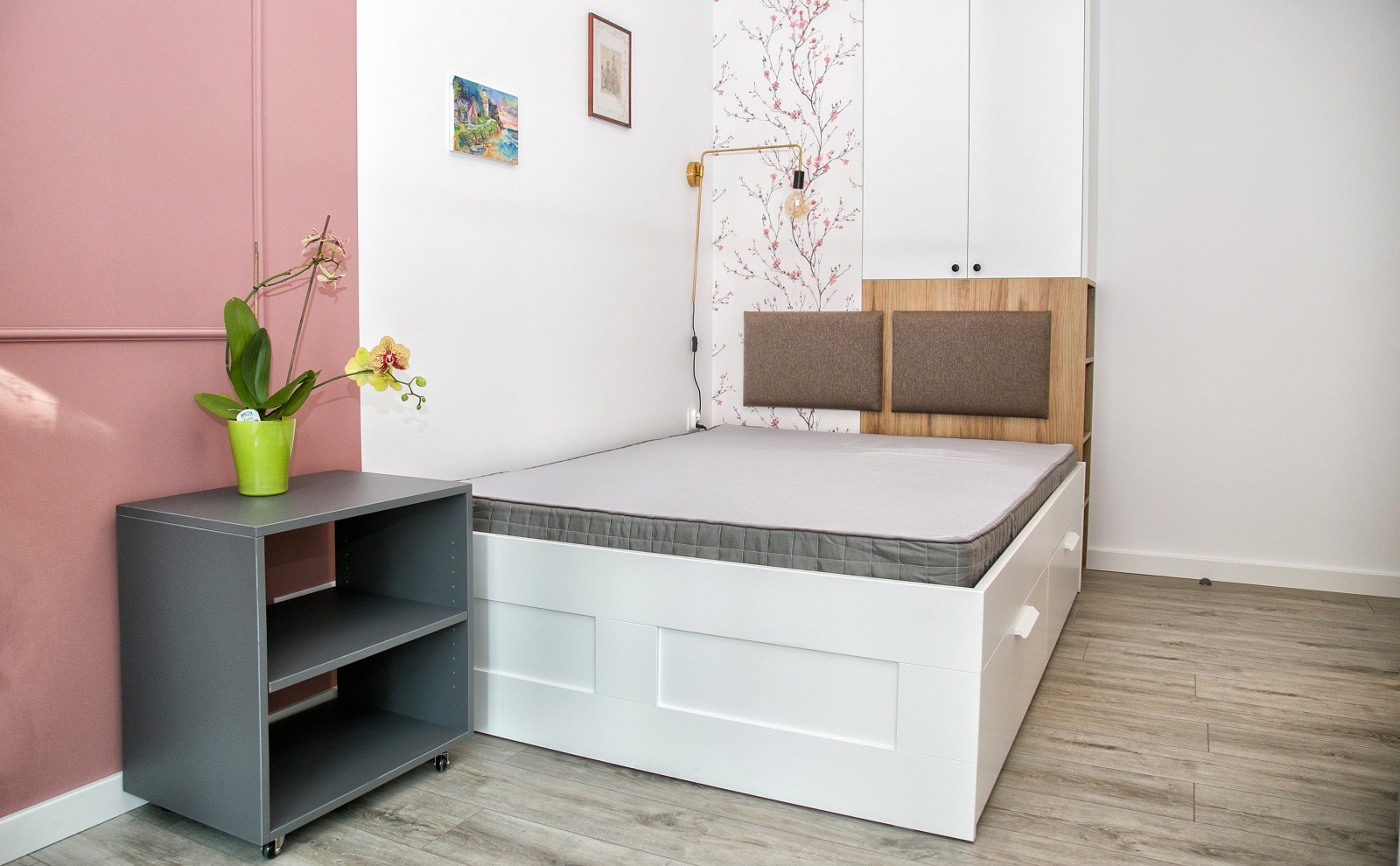 Kompleksowe wykończenie mieszkania na osiedlu Grzegórzki Park w Krakowie. Prace obejmowały modyfikację instalacji elektrycznej oraz wod-kan., wykonanie gładzi, malowania, flizowania, układania deski podołogowej, wykonanie zabudowy meblowej, montaż lamp, karniszy itp.