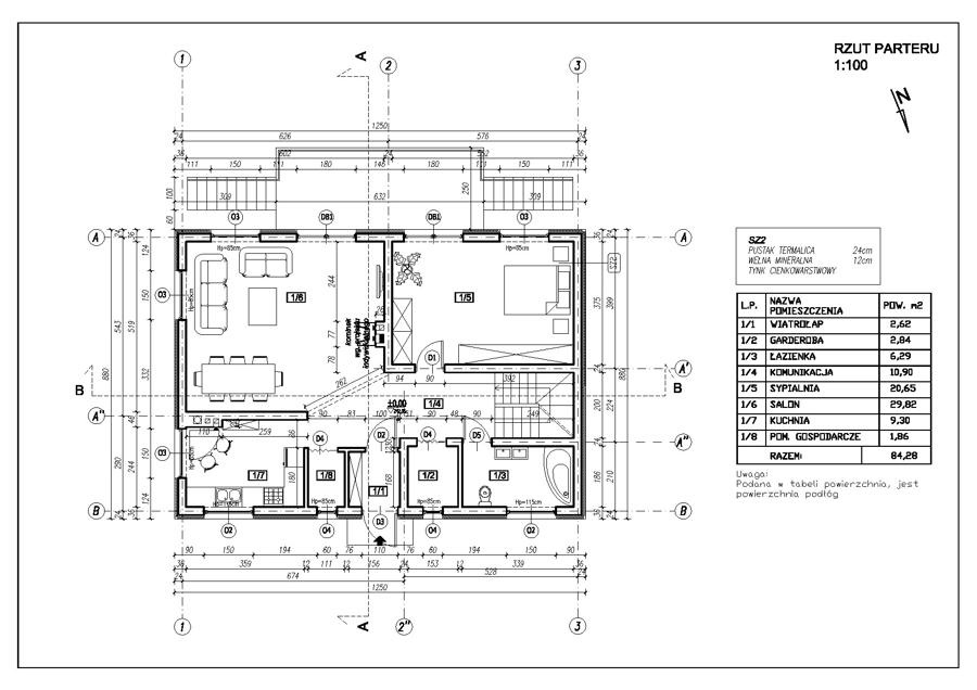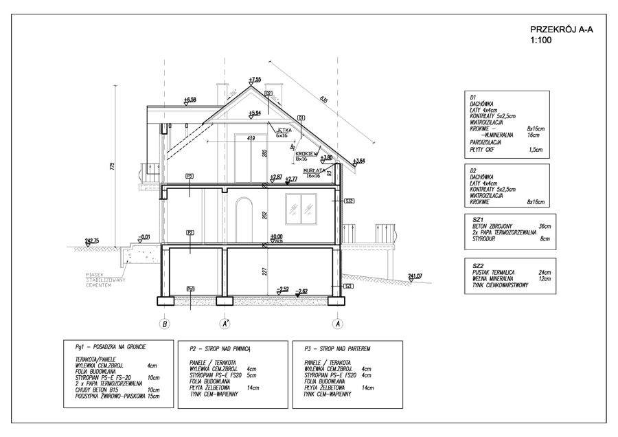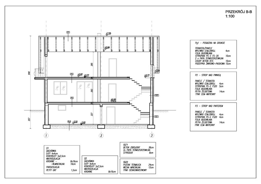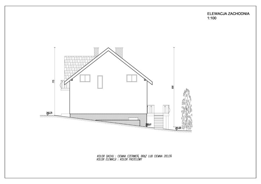 Projekt indywidualny domu jednorodzinnego z pełnym podpiwniczeniem, dostosowanego do działki o dużym nachyleniu